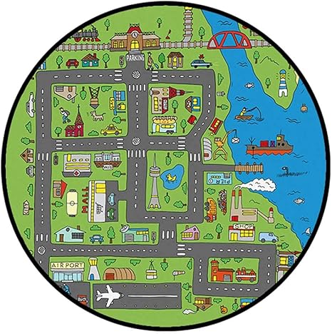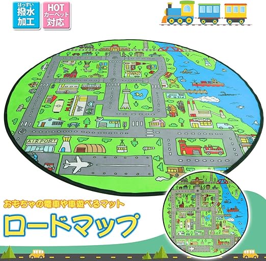 Amazon Co Jp キッズ プレイマット 子供部屋 マット 撥水加工 防汚加工 ロードマップ おもちゃ 教育 カーペット 敷物 ラグ 学習デスク マット お遊び 園児 キッズルーム 出産祝い 入園祝い 誕生日プレゼント こどもの日 春夏秋冬 円形 丸型 直径100cm おしゃれ 道路柄