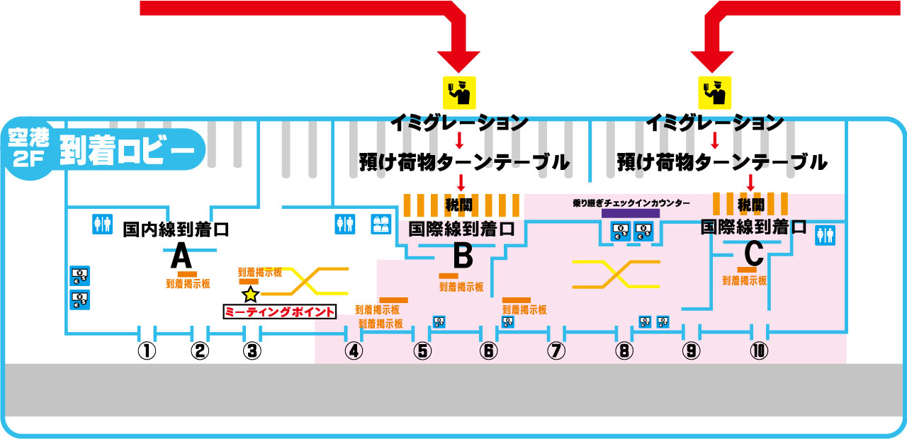 スワンナプーム国際空港の到着 お乗り継ぎのご案内