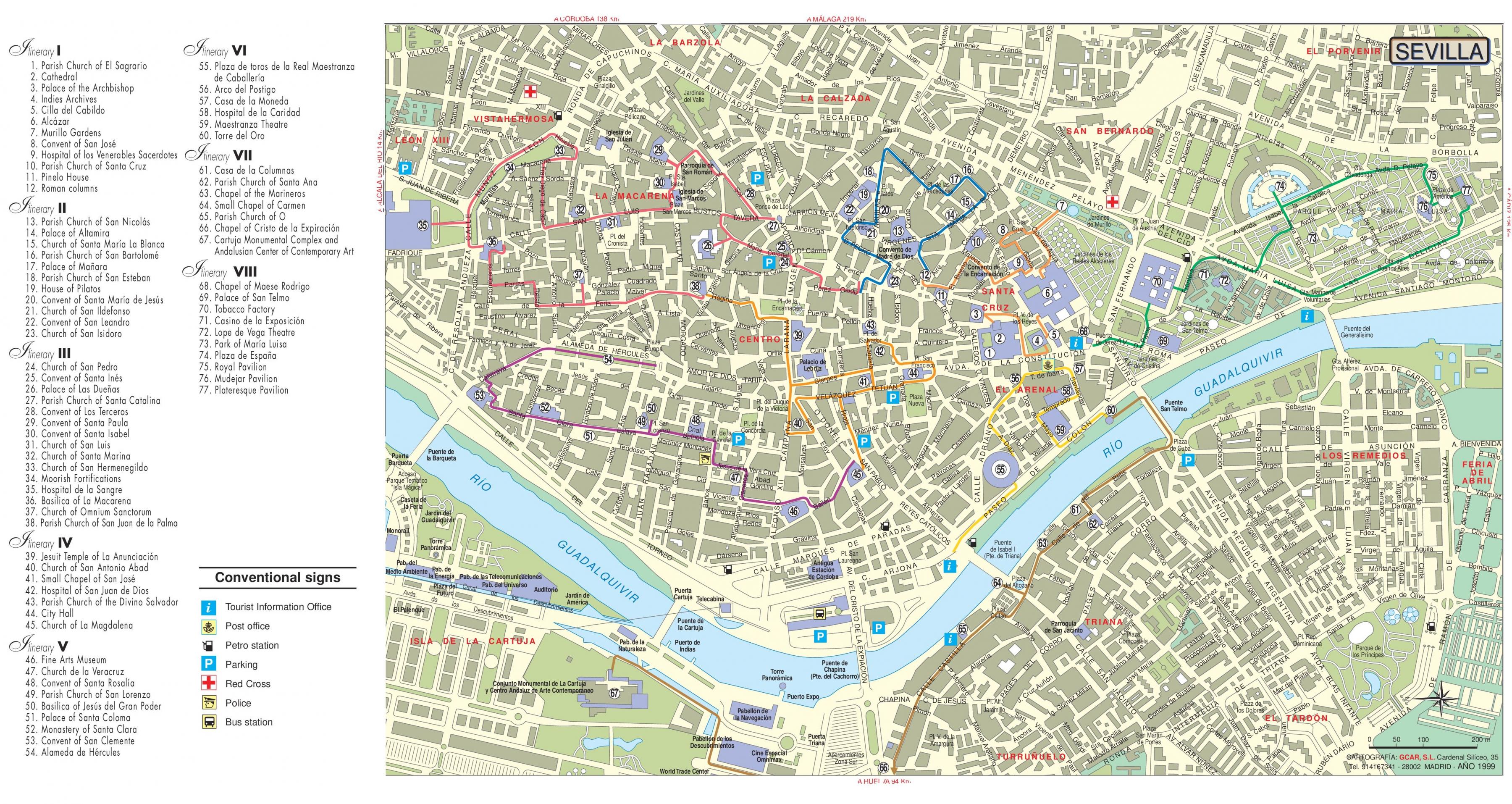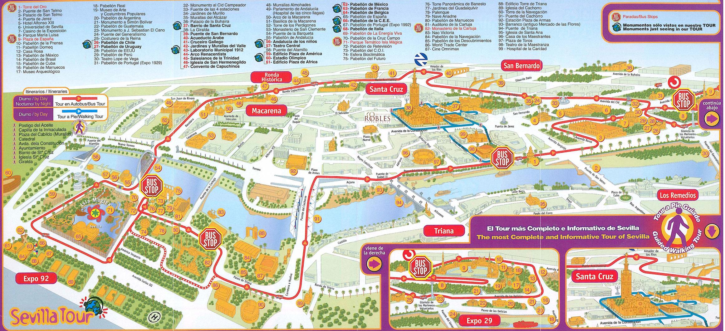 セビリアの地図の観光名所 セビリヤスペインの地図観光地 アンダルシア スペイン