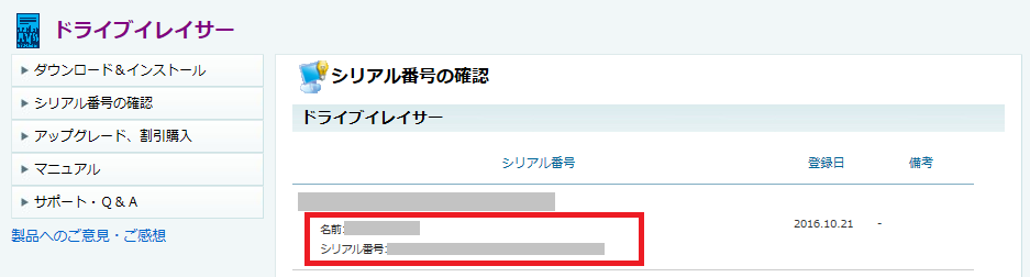 名前 シリアル番号がわからない ドライブイレイサー ソースネクスト