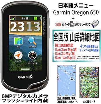 Amazon Garmin Oregon 650 日本語メニュー 全国版 山岳詳細地図 32gb Sdカード バッテリーパック付き デジタルカメラ内蔵 タッチスクリーン ハンディgps garmin トレッキング用gps アクセサリー