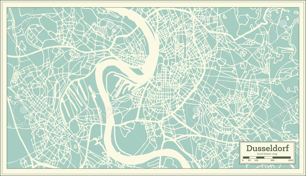レトロなスタイルでデュッセルドルフドイツ市地図 アウトライン マップ ベクトルイラストレーション のイラスト素材 ベクタ Image 94290697
